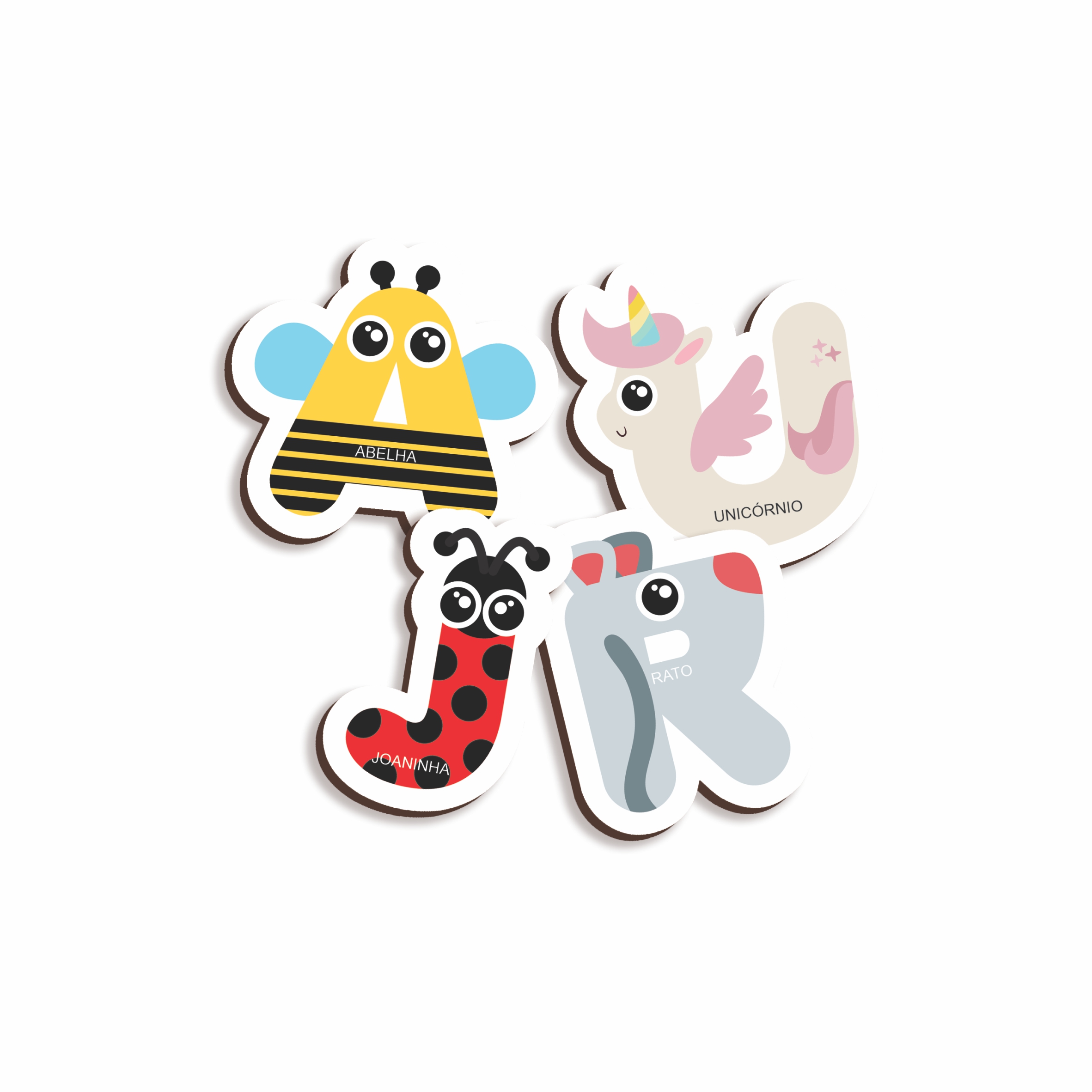 O alfabeto divertido reforça o aprendizado do alfabeto de maneira divertida e criativa. contém 26 letras ilustradas com o tema animais (as letras não tem associação às figuras), medindo 6 cm cada.