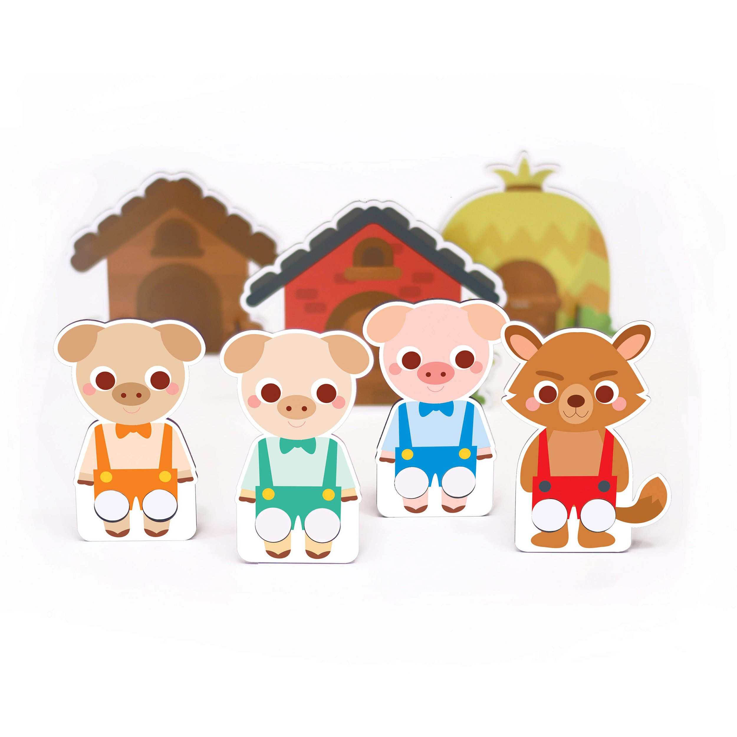Contém 4 dedoches e 3 casinhas em formato de cenário.
