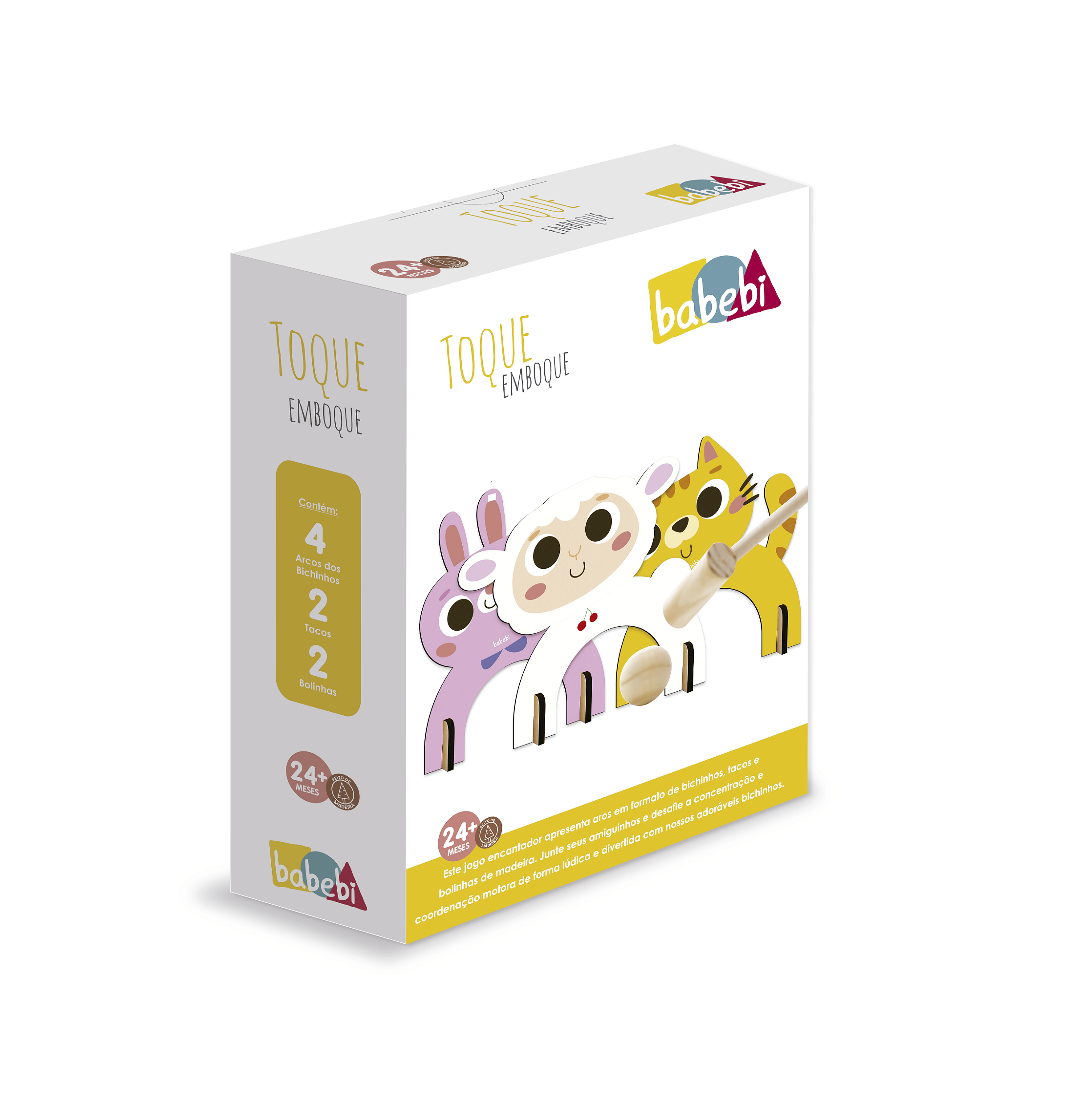 Este jogo encantador apresenta arcos em formato de bichinhos, tacos e bolinhas de madeira. Junte seus amiguinhos e desafie a concentração e coordenação motora de forma lúdica e divertida com nossos adoráveis bichinhos.